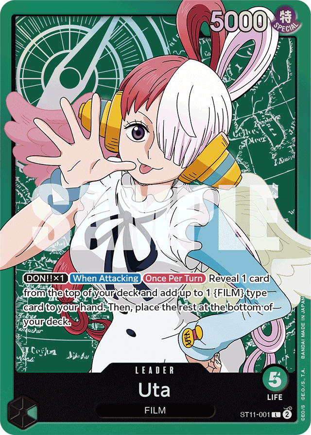 [DON!! x1] [When Attacking] [Once Per Turn] Reveal 1 card from the top of your deck and add up to 1 {FILM} type card to your hand. Then, place the rest at the bottom of your deck.