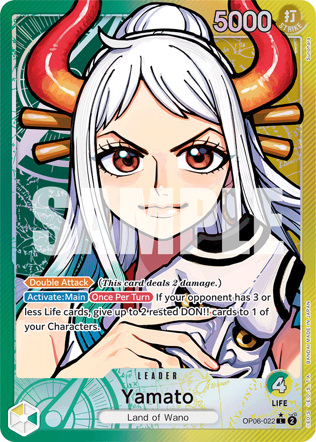 [Double Attack] (This card deals 2 damage.) [Activate: Main] [Once Per Turn] If your opponent has 3 or less Life cards, give up to 2 rested DON!! cards to 1 of your Characters.