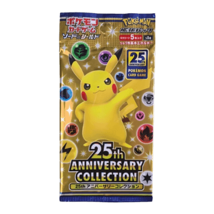 25th Anniversary Collection is a Japanese Sword & Shield-era Pokémon TCG release (code S8a) issued in October 2021 to commemorate the franchise's 25th anniversary. It is a small, collector-focused release catalogued with 38 listed cards and 28 printed cards, produced in Japanese and not online-only. Collectors typically find promotional and celebratory cards in this product—often reprints, special art or anniversary-themed prints—rather than a large standard expansion, so it is aimed more at collectors and fans than at organized competitive play.