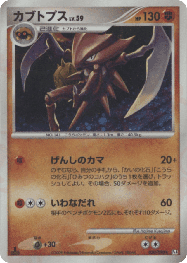 Primal Scythe20+Cost: 1のぞむなら、自分の手札から、「かいの化石」「こうらの化石」「ひみつのコハク」のうち1枚を選び、トラッシュしてよい。その場合、50ダメージを追加。
