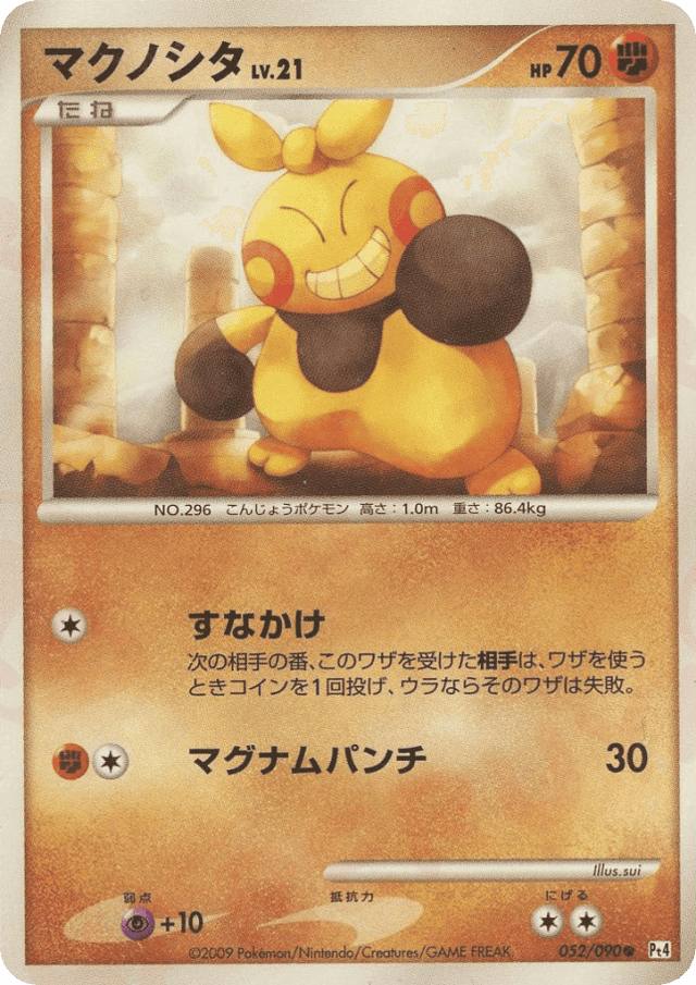 If the Defending Pokémon tries to attack during your opponent's next turn, your opponent flips a coin. If tails, that attack does nothing. - マグナムパンチ