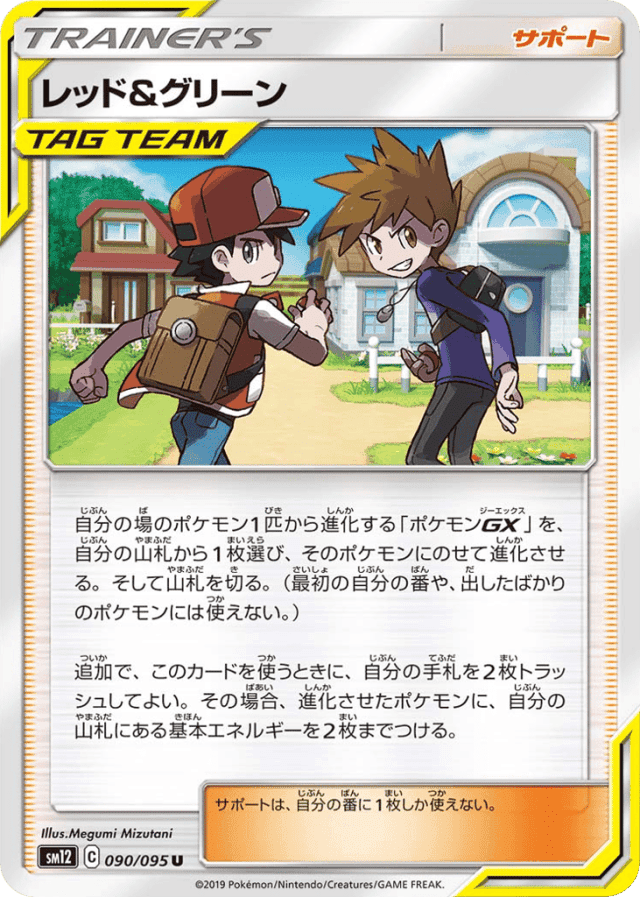 自分の場のポケモン1匹から進化する「ポケモンGX」を、自分の山札から1枚選び、そのポケモンにのせて進化させる。そして山札を切る。(最初の自分の番や、出したばかりのポケモンには使えない。) 追加で、このカードを使うときに、自分の手札を2枚トラッシュしてよい。その場合、進化させたポケモンに、自分の山札にある基本エネルギーを2枚までつける。 サポートは、自分の番に1枚しか使えない。