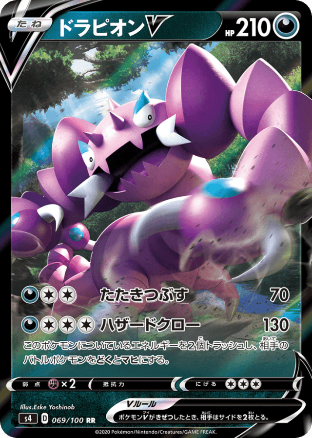 Hazardous Claws130Cost: 4このポケモンについているエネルギーを2個トラッシュし、相手のバトルポケモンをどくとマヒにする。