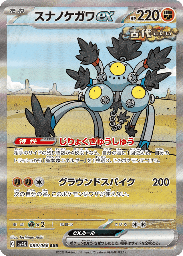 相手のサイドの残り枚数が4枚以下なら、自分の番に1回使える。自分のトラッシュから「基本Fightingエネルギー」を1枚選び、このポケモンにつける。