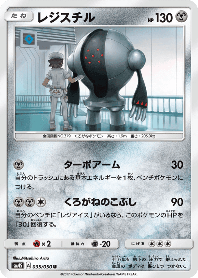 Iron Fist90Cost: 3自分のベンチに「レジアイス」がいるなら、このポケモンのHPを「30」回復する。