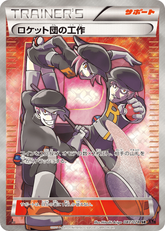 コインを2回投げ、オモテの数×2枚ぶん、相手の山札を上からトラッシュする。 サポートは、自分の番に1枚しか使えない。