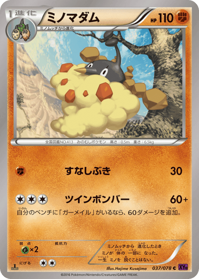 ミノムッチから 進化したとき ミノが 体の 一部に なった。 一生 ミノを 脱ぐことはない。