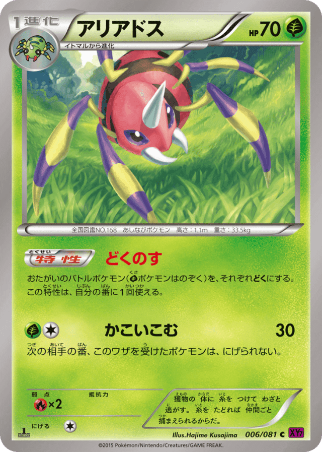 おたがいのバトルポケモン(Grassポケモンはのぞく)を、それぞれどくにする。この特性は、自分の番に1回使える。
