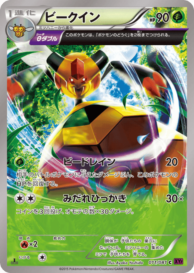 Bee Drain20Cost: 1相手のバトルポケモンに与えたダメージぶん、このポケモンのHPを回復する。