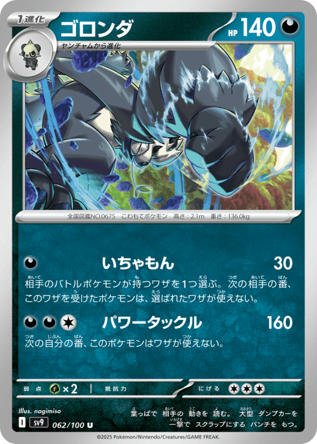 Power Tackle160Cost: 3次の自分の番、このポケモンはワザが使えない。