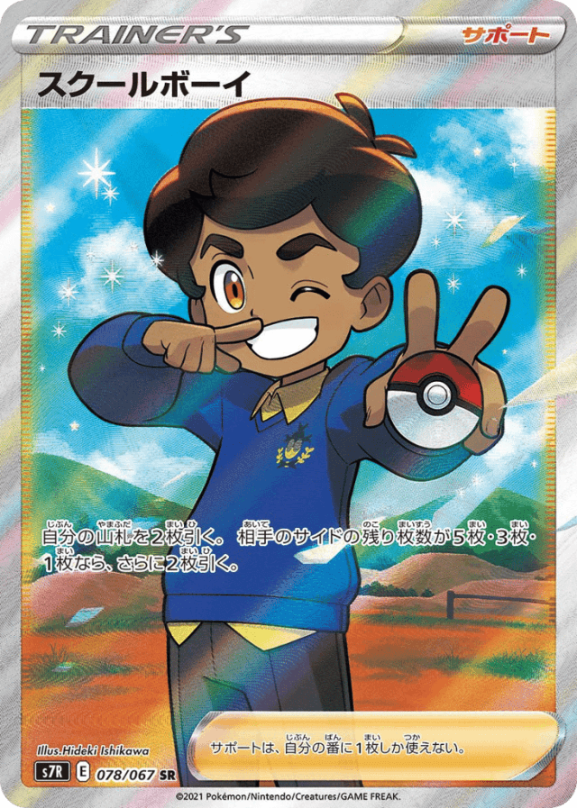 自分の山札を2枚引く。相手のサイドの残り枚数が5枚・3枚・1枚なら、さらに2枚引く。 サポートは、自分の番に1枚しか使えない。