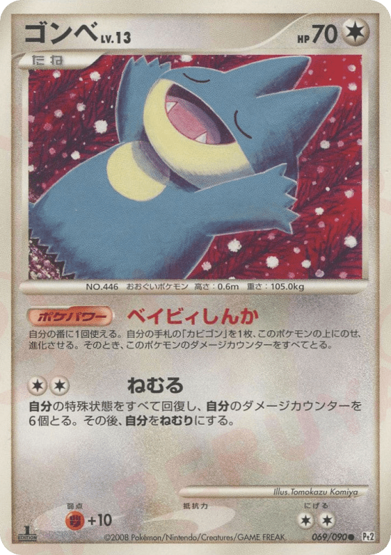 自分の特殊状態をすべて回復し、自分のダメージカウンターを6個とる。その後、自分をねむりにする。