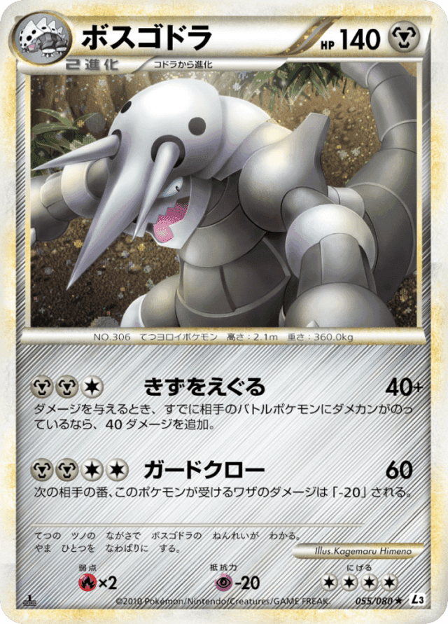 てつの ツノの ながさで ボスゴドラの ねんれいが わかる。 やま ひとつを なわばりに する。