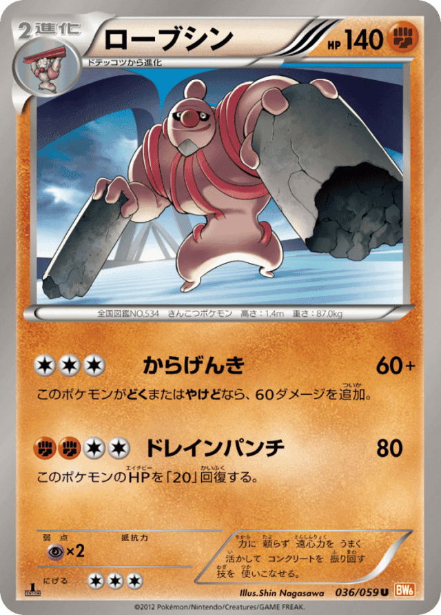 Facade60+Cost: 3このポケモンがどくまたはやけどなら、60ダメージを追加。