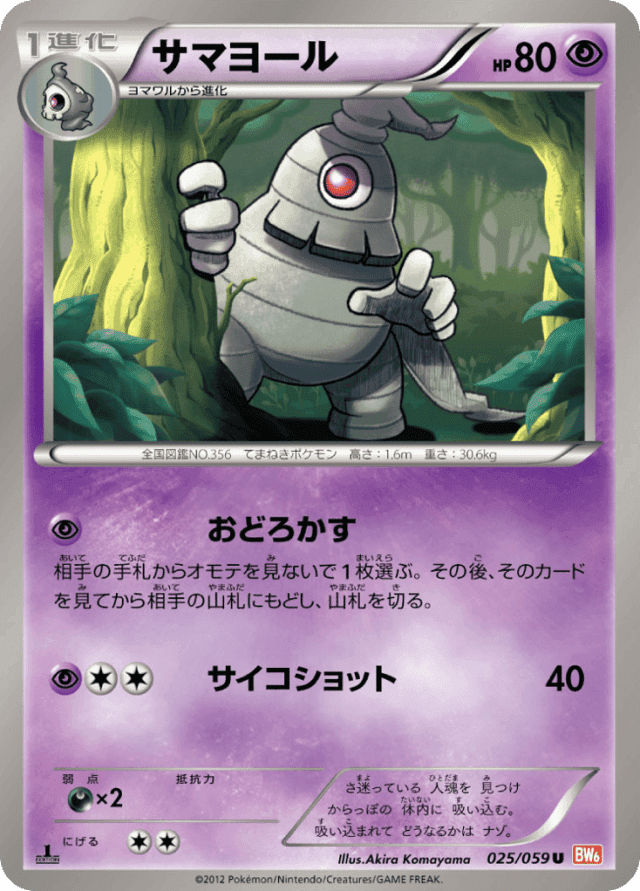 相手の手札からオモテを見ないで1枚選ぶ。その後、そのカードを見てから相手の山札にもどし、山札を切る。