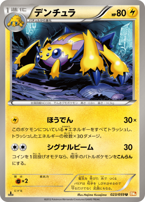 このポケモンについているElectricエネルギーをすべてトラッシュし、トラッシュしたエネルギーの枚数×30ダメージ。