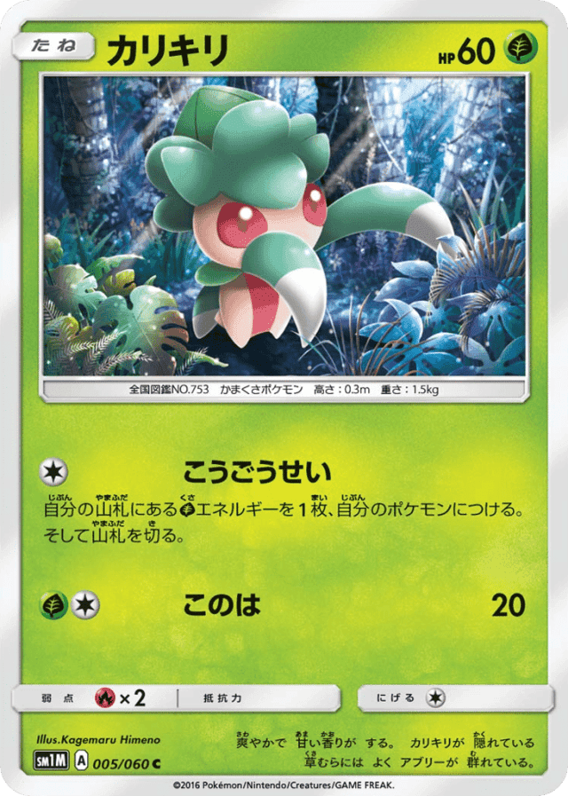 自分の山札にあるGrassエネルギーを1枚、自分のポケモンにつける。そして山札を切る。