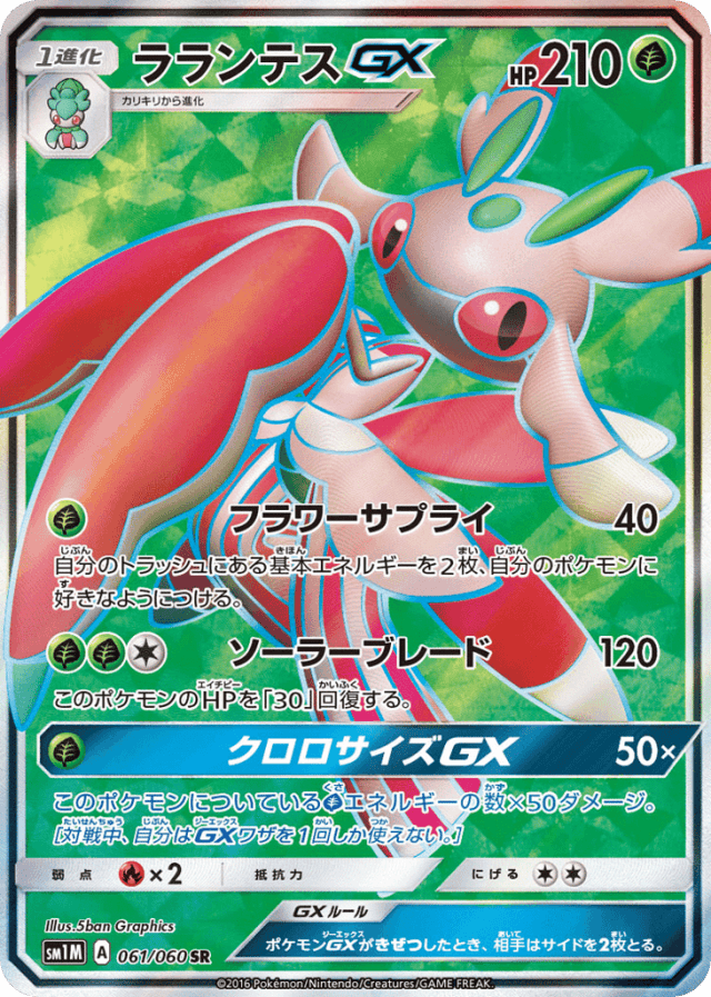 このポケモンについているGrassエネルギーの数×50ダメージ。[対戦中、自分はGXワザを1回しか使えない。]