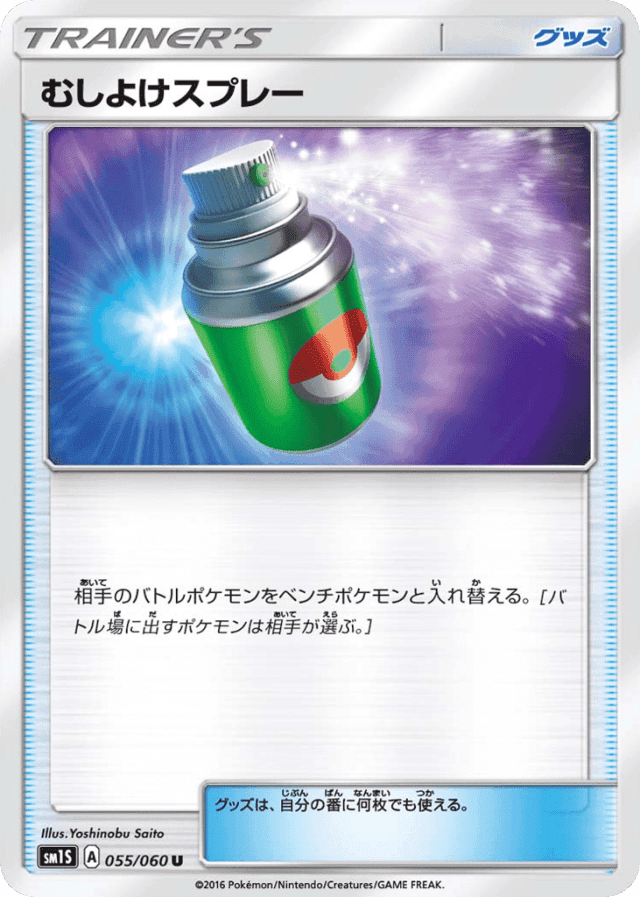 相手のバトルポケモンをベンチポケモンと入れ替える。[バトル場に出すポケモンは相手が選ぶ。] グッズは、自分の番に何枚でも使える。