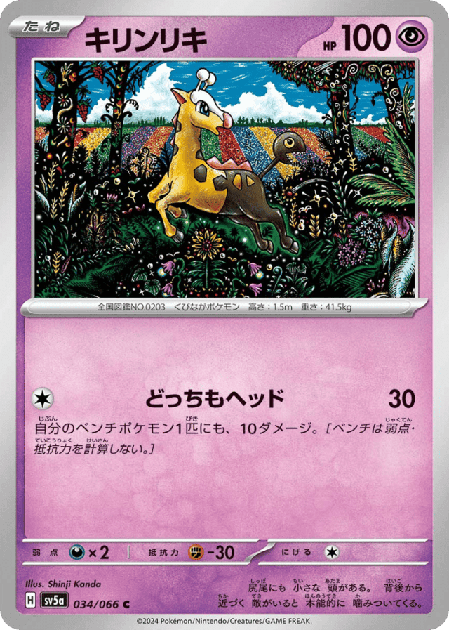 Dual Headbutt30Cost: 1自分のベンチポケモン1匹にも、10ダメージ。[ベンチは弱点・抵抗力を計算しない。]