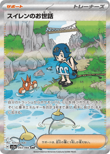 自分の山札から1進化ポケモンを3枚まで選び、相手に見せて、手札に加える。そして山札を切る。 グッズは、自分の番に何枚でも使える。