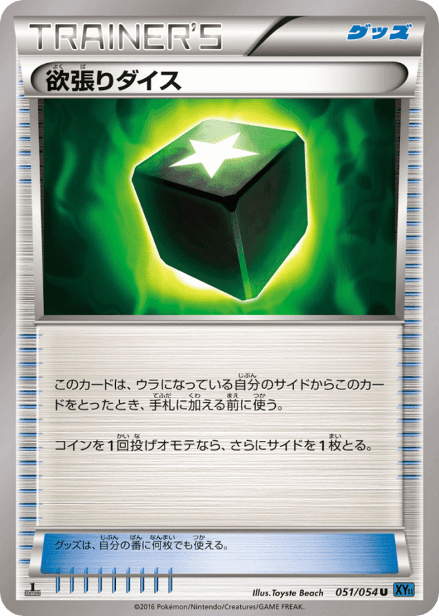 このカードは、ウラになっている自分のサイドからこのカードをとったとき、手札に加える前に使う。 コインを1回投げオモテなら、さらにサイドを1枚とる。 グッズは、自分の番に何枚でも使える。