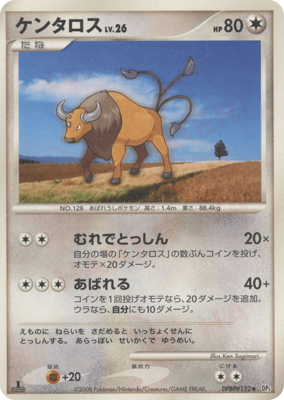 自分の場の「ケンタロス」の数ぶんコインを投げ、オモテ×20ダメージ。