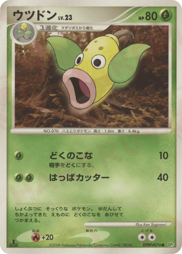しょくぶつに そっくりな ポケモン。 ゆだんして ちかよってきた えものに どくのこなを あびせて つかまえる。