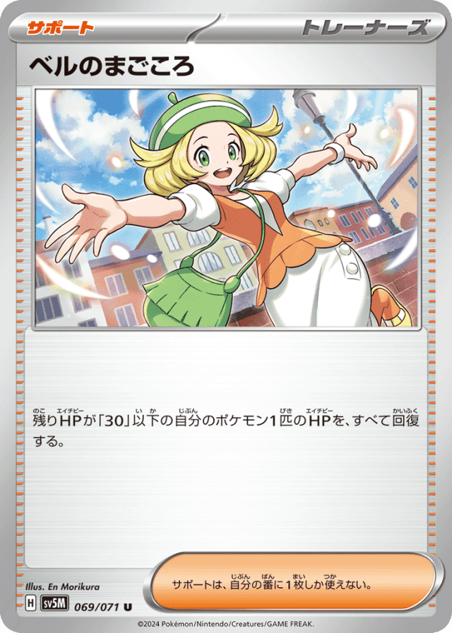 残りHPが「30」以下の自分のポケモン1匹のHPを、すべて回復する。 サポートは、自分の番に1枚しか使えない。