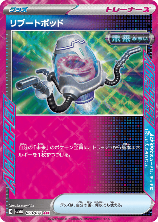 自分の「未来」のポケモン全員に、トラッシュから基本エネルギーを1枚ずつつける。 グッズは、自分の番に何枚でも使える。