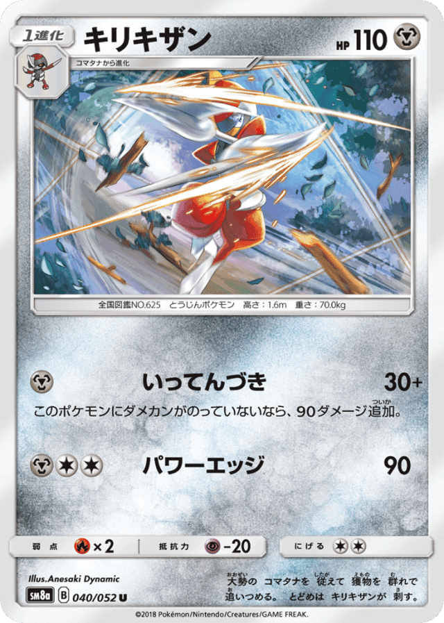 Single Lunge30+Cost: 1このポケモンにダメカンがのっていないなら、90ダメージ追加。