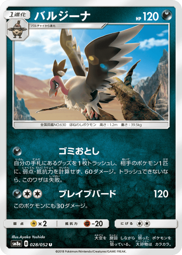 自分の手札にあるグッズを1枚トラッシュし、相手のポケモン1匹に、弱点・抵抗力を計算せず、60ダメージ。トラッシュできないなら、このワザは失敗。