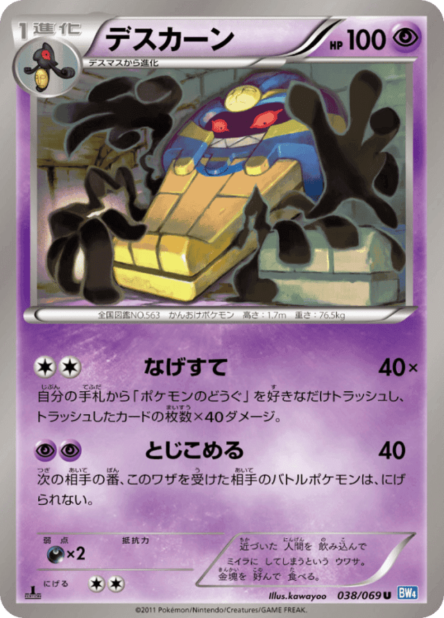 Chuck40×Cost: 2自分の手札から「ポケモンのどうぐ」を好きなだけトラッシュし、トラッシュしたカードの枚数×40ダメージ。