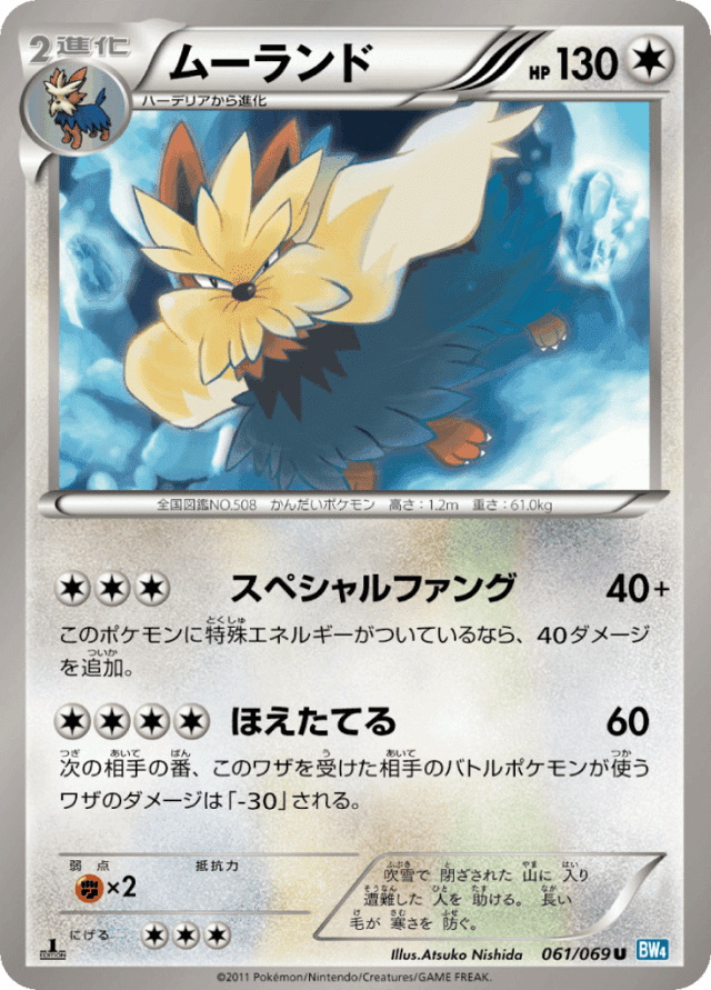 Special Fang40+Cost: 3このポケモンに特殊エネルギーがついているなら、40ダメージを追加。