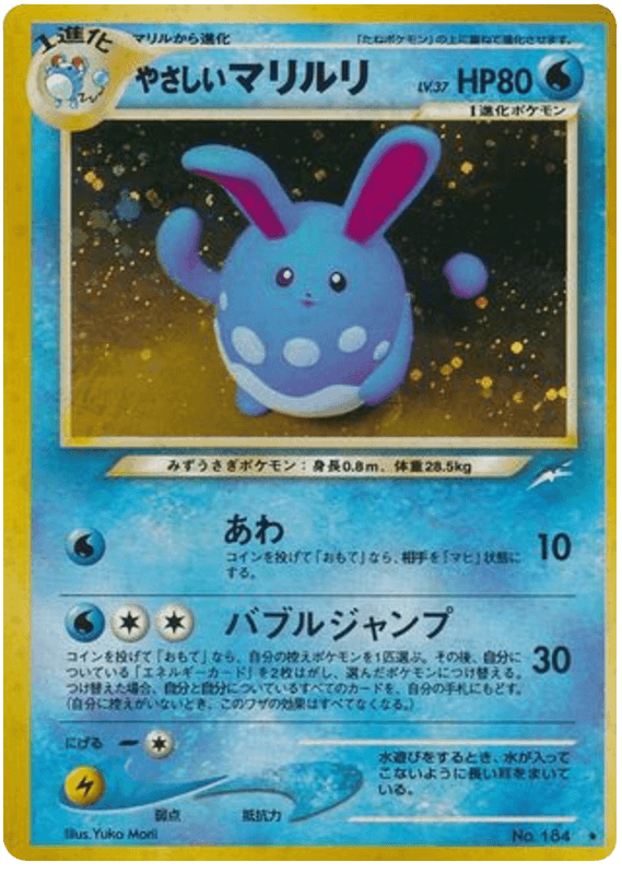 If you have any Benched Pokémon, flip a coin. If heads, take 2 Energy cards attached to Light Azumarill and attach them to 1 of your Benched Pokémon. Then return Light Azumarill and all cards attached to it to your hand.