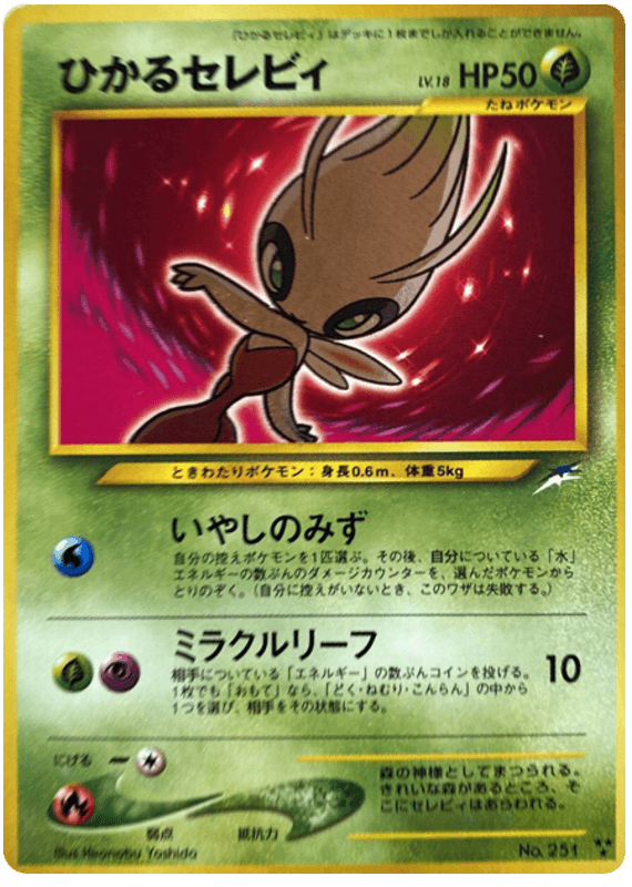 Remove a number of damage counters from 1 of your Benched Pokémon equal to the number of Water Energy cards attached to Shining Celebi. If the Pokémon has fewer damage counters than that, remove all of them.