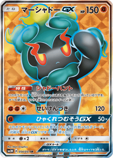 相手の手札からオモテを見ないで1枚選び、オモテを見る。そのカードがサポートなら、トラッシュする。サポートでないなら、もとの手札にもどす。 グッズは、自分の番に何枚でも使える。