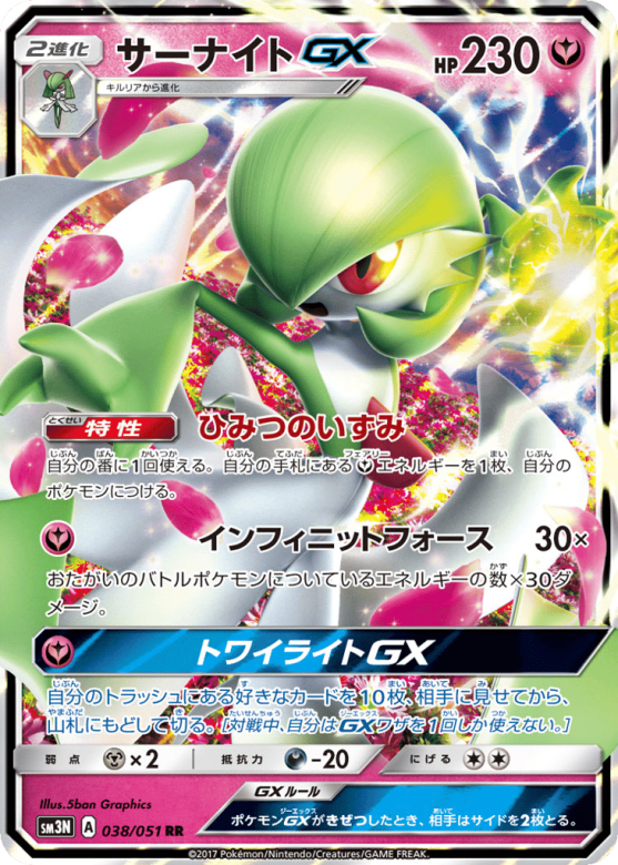 自分のトラッシュにある好きなカードを10枚、相手に見せてから、山札にもどして切る。[対戦中、自分はGXワザを1回しか使えない。]