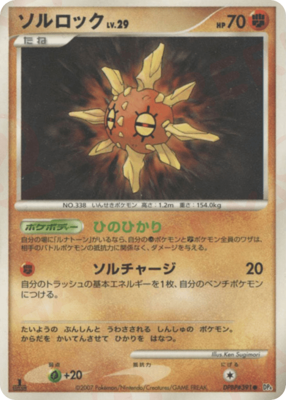 たいようの ぶんしんと うわさされる しんしゅの ポケモン。からだを かいてんさせて ひかりを はなつ。