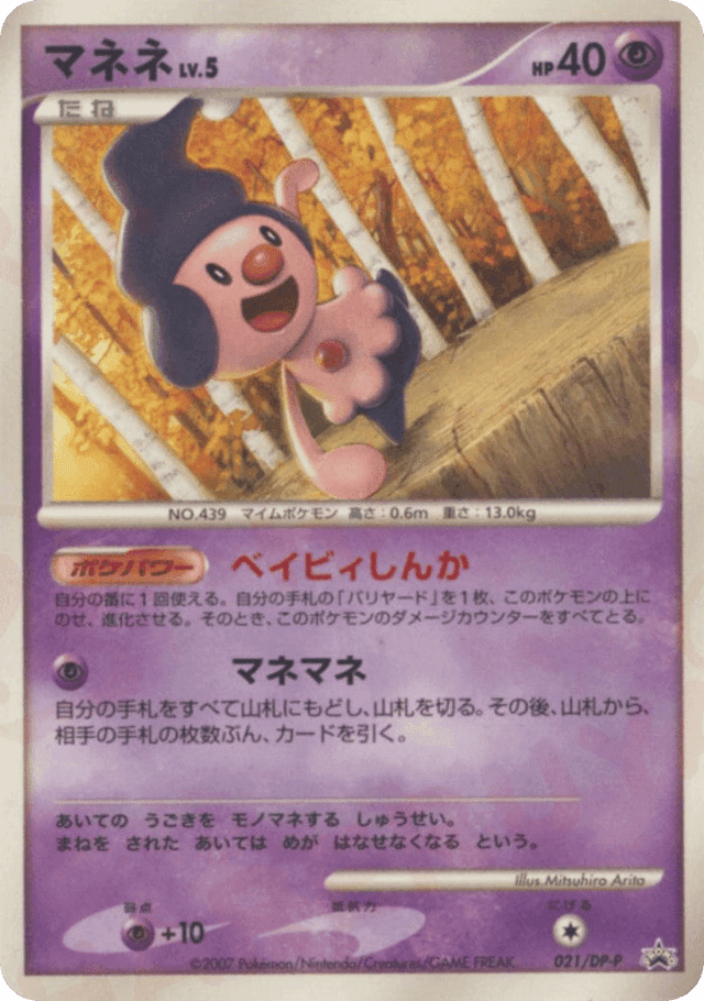 Once during your turn (before your attack), you may put Mr. Mime from your hand onto Mime Jr. (this counts as evolving Mime Jr.) and remove all damage counters from Mime Jr..