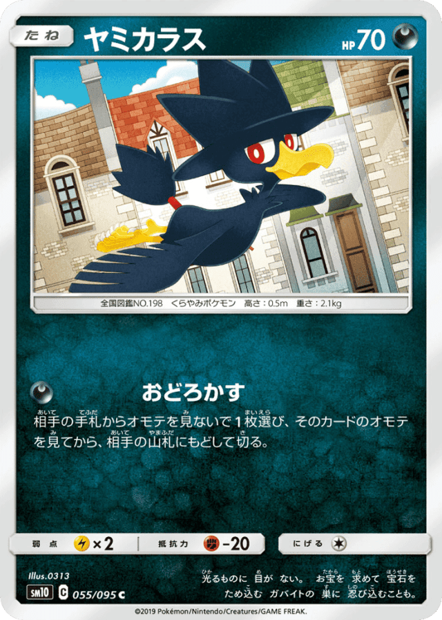 相手の手札からオモテを見ないで1枚選び、そのカードのオモテを見てから、相手の山札にもどして切る。