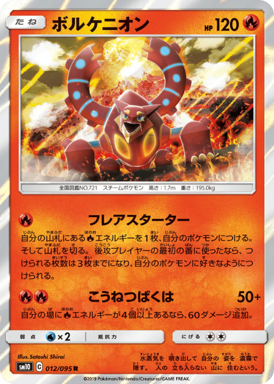 自分の山札にあるFireエネルギーを1枚、自分のポケモンにつける。そして山札を切る。後攻プレイヤーの最初の番に使ったなら、つけられる枚数は3枚までになり、自分のポケモンに好きなようにつけられる。
