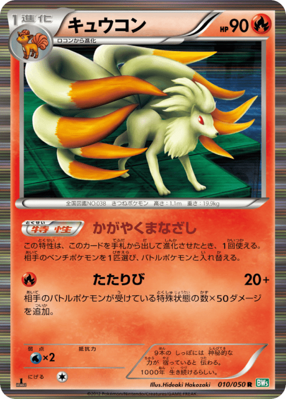 この特性は、このカードを手札から出して進化させたとき、1回使える。相手のベンチポケモンを1匹選び、バトルポケモンと入れ替える。