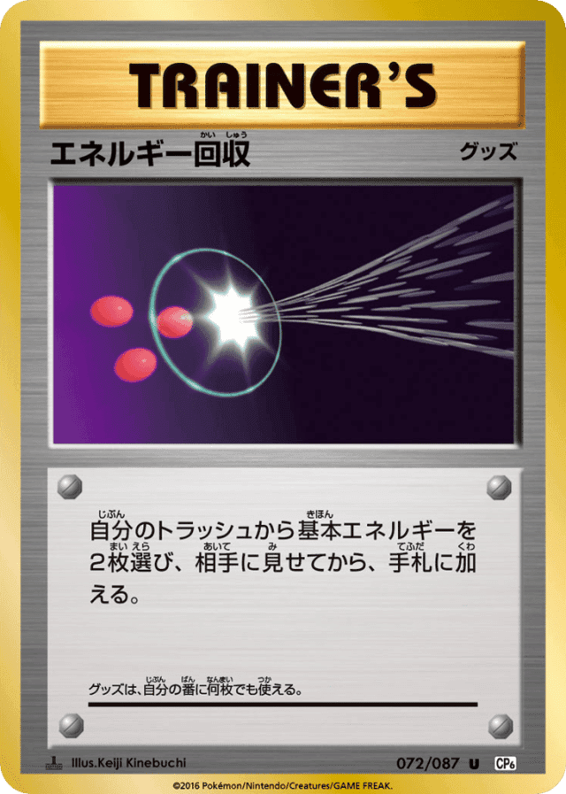 自分のトラッシュから基本エネルギーを2枚選び、相手に見せてから、手札に加える。