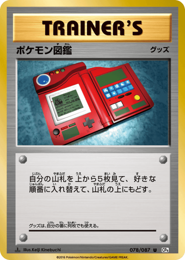 自分の山札を上から5枚見て、好きな順番に入れ替えて、山札の上にもどす。 グッズは、自分の番に何枚でも使える。