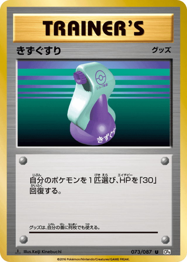 自分のポケモンを1匹選び、HPを「30」回復する。 グッズは、自分の番に何枚でも使える。