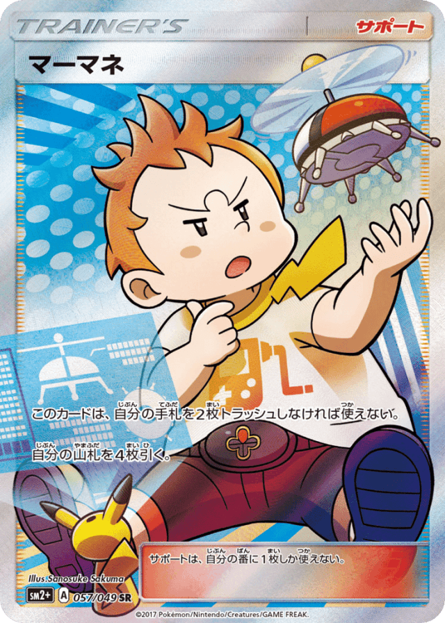 このカードは、自分の手札を2枚トラッシュしなければ使えない。 自分の山札を4枚引く。 サポートは、自分の番に1枚しか使えない。