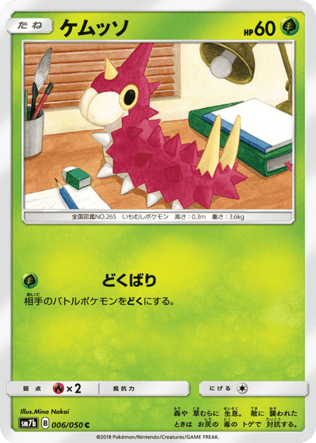 森や 草むらに 生息。 敵に 襲われた ときは お尻の 毒の トゲで 対抗する。