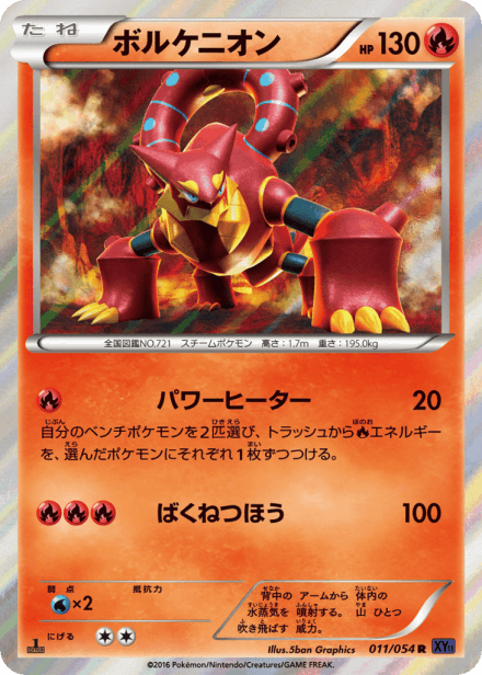 爆熱の闘士 (translated as "Fever-Burst Fighter") is a Japanese expansion of the Pokémon Trading Card Game in the XY series, released in Japan on June 17, 2016. The set is cataloged with 59 cards and a printed total of 54, indicating the presence of a few special or variant printings beyond the core printed lineup. Collectors can expect a typical XY-era mix of Pokémon, Trainer, and Energy cards with a range of rarities including holographic and rare variants, plus occasional promotional or alternate-art cards consistent with other releases in the series.