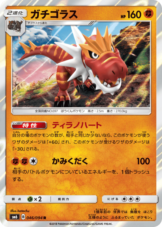 自分の場のポケモンの数が、相手と同じか少ないなら、このポケモンが使うワザのダメージは「+60」され、このポケモンが受けるワザのダメージは「-30」される。